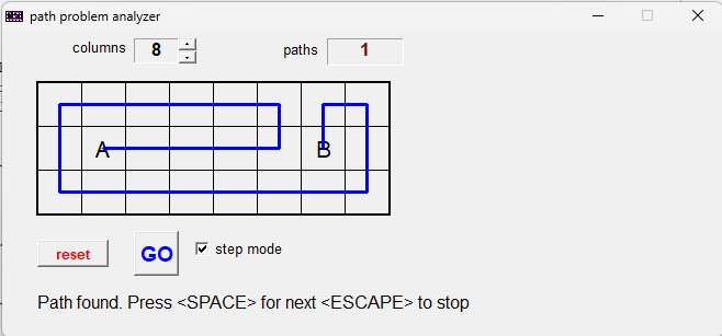Getoond wordt het eerst gevonden pad in een figuur met 8 kolommen.